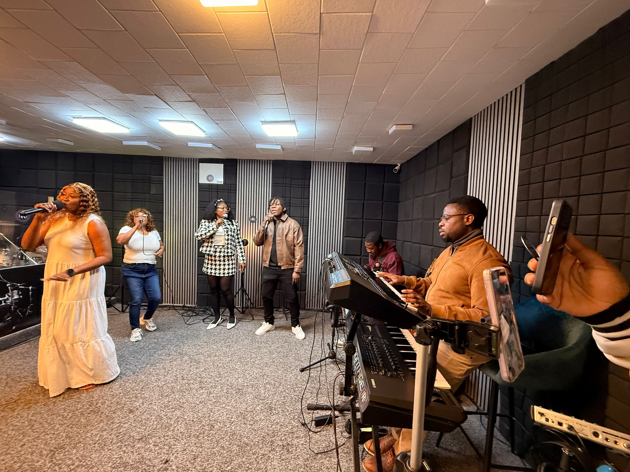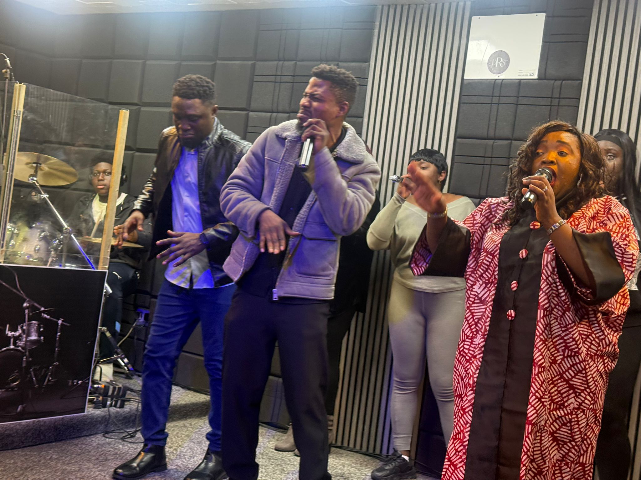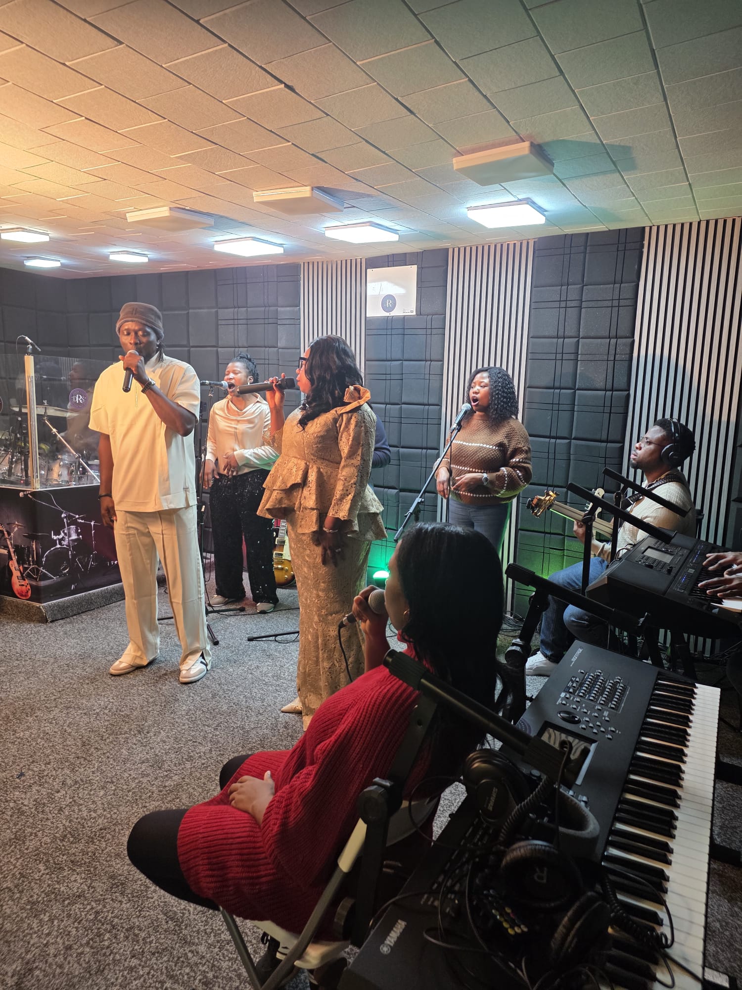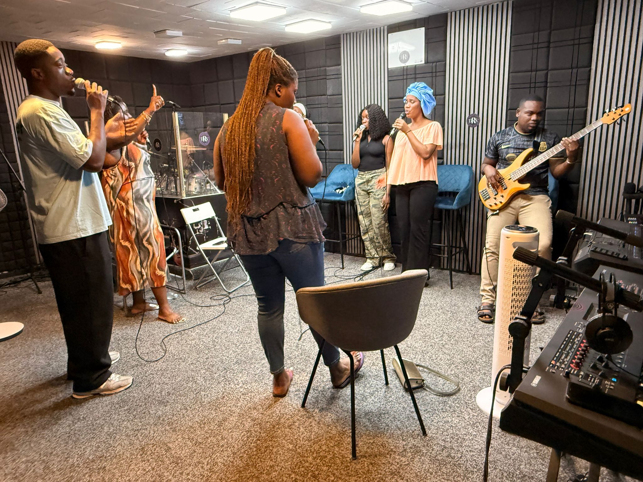 A spirited rehearsal as the choir lifts their voices in harmony, performing “Alade Ogo.” The blend of passion, melody, and unity fills the studio, capturing the soul of collective worship and the vibrant atmosphere of Darocam Studio.