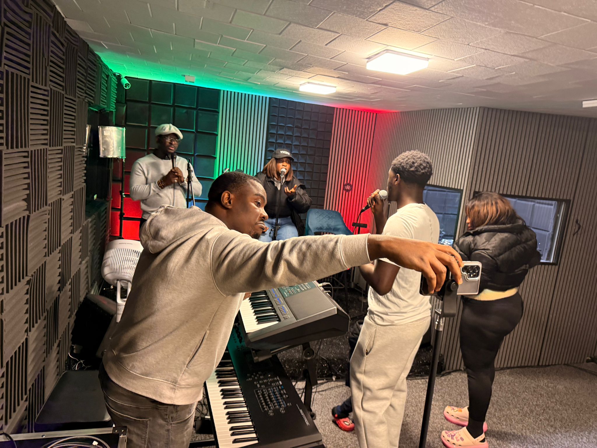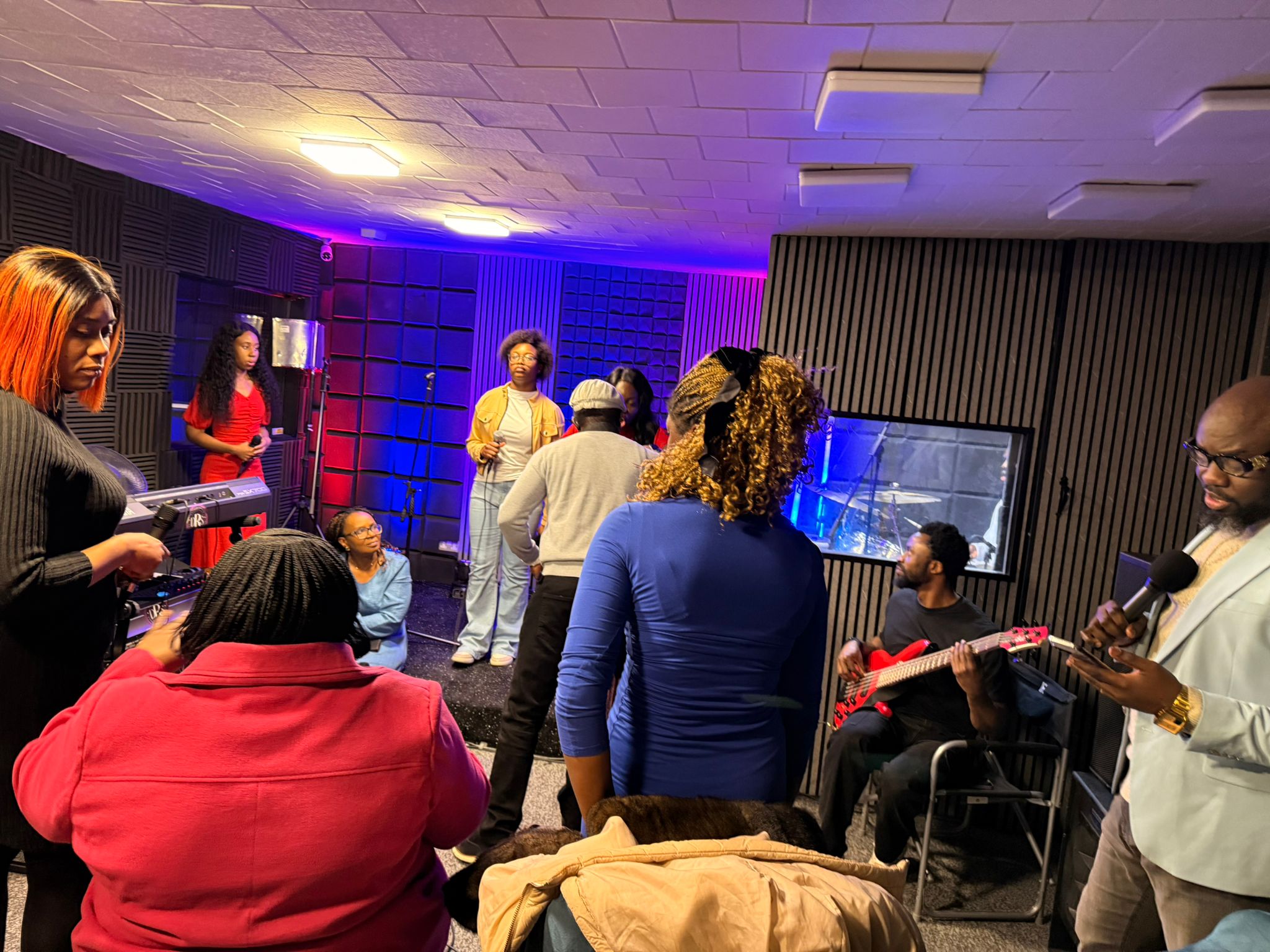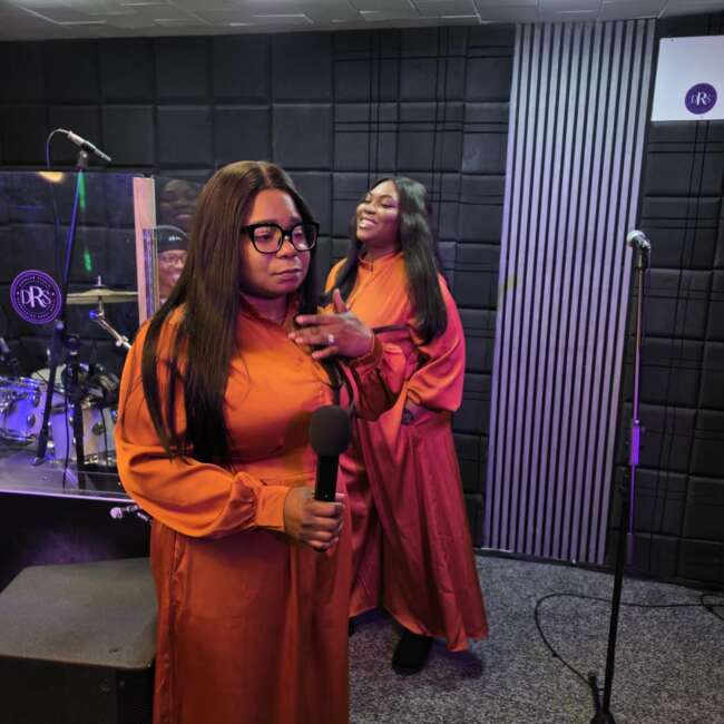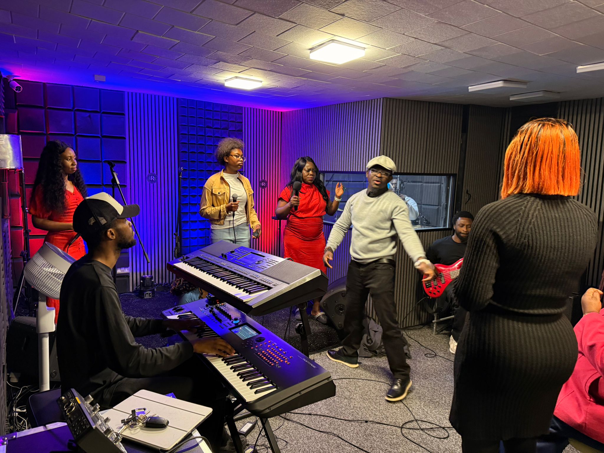 A spirited rehearsal as the choir lifts their voices in harmony, performing “Alade Ogo.” The blend of passion, melody, and unity fills the studio, capturing the soul of collective worship and the vibrant atmosphere of Darocam Studio.