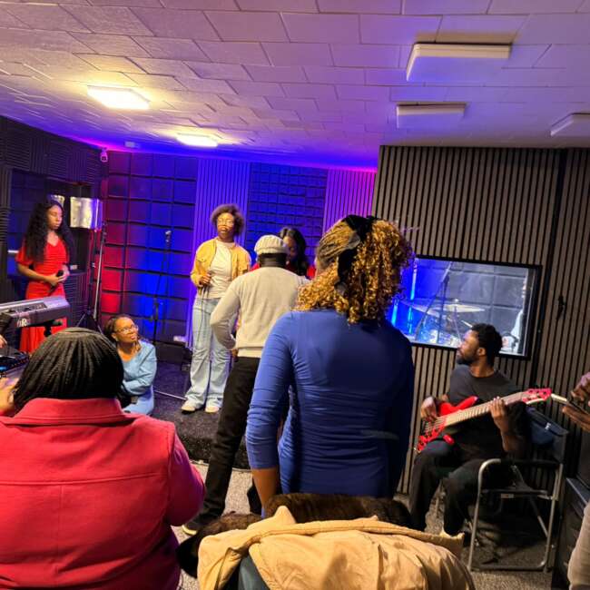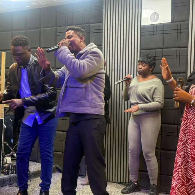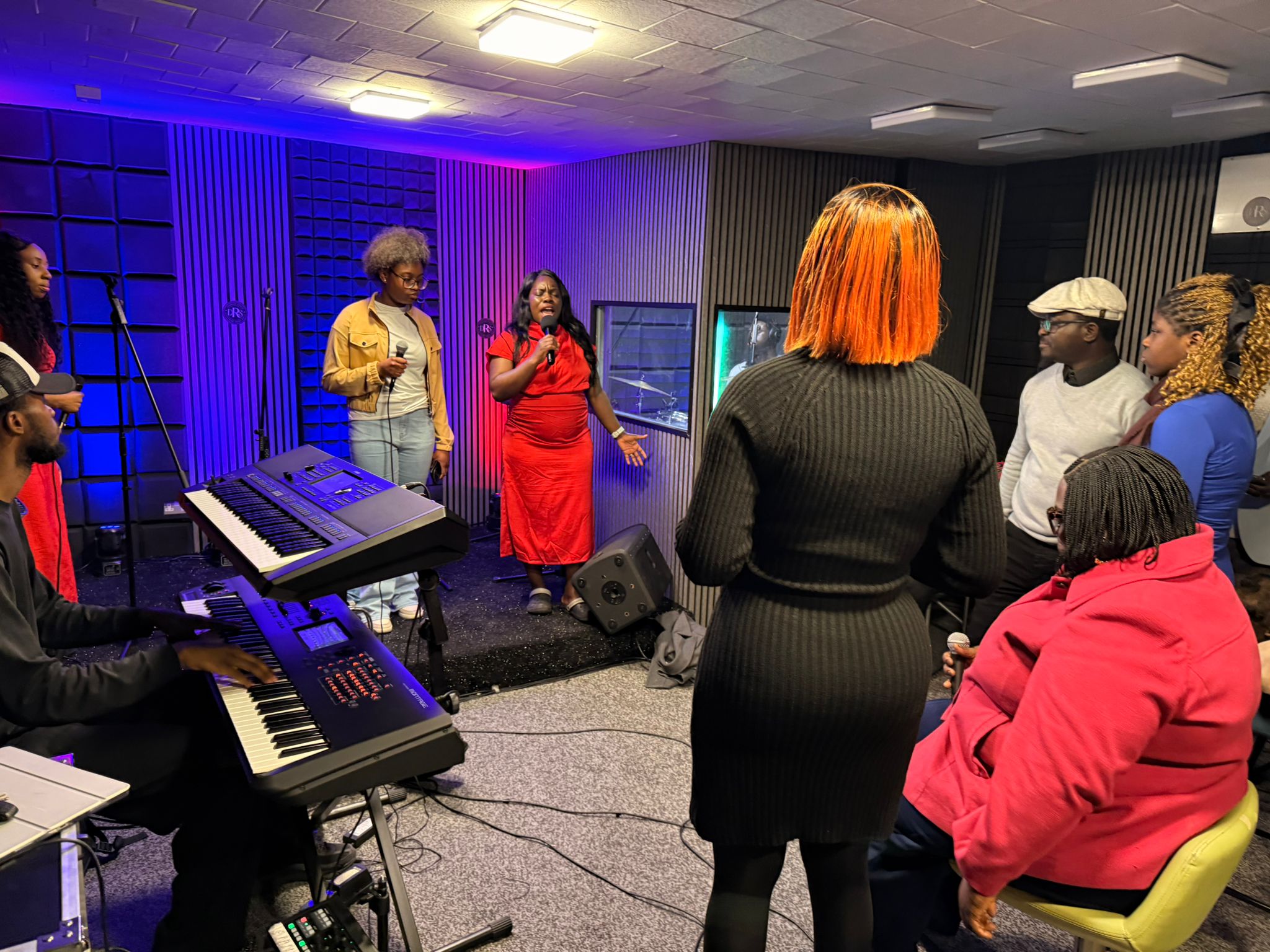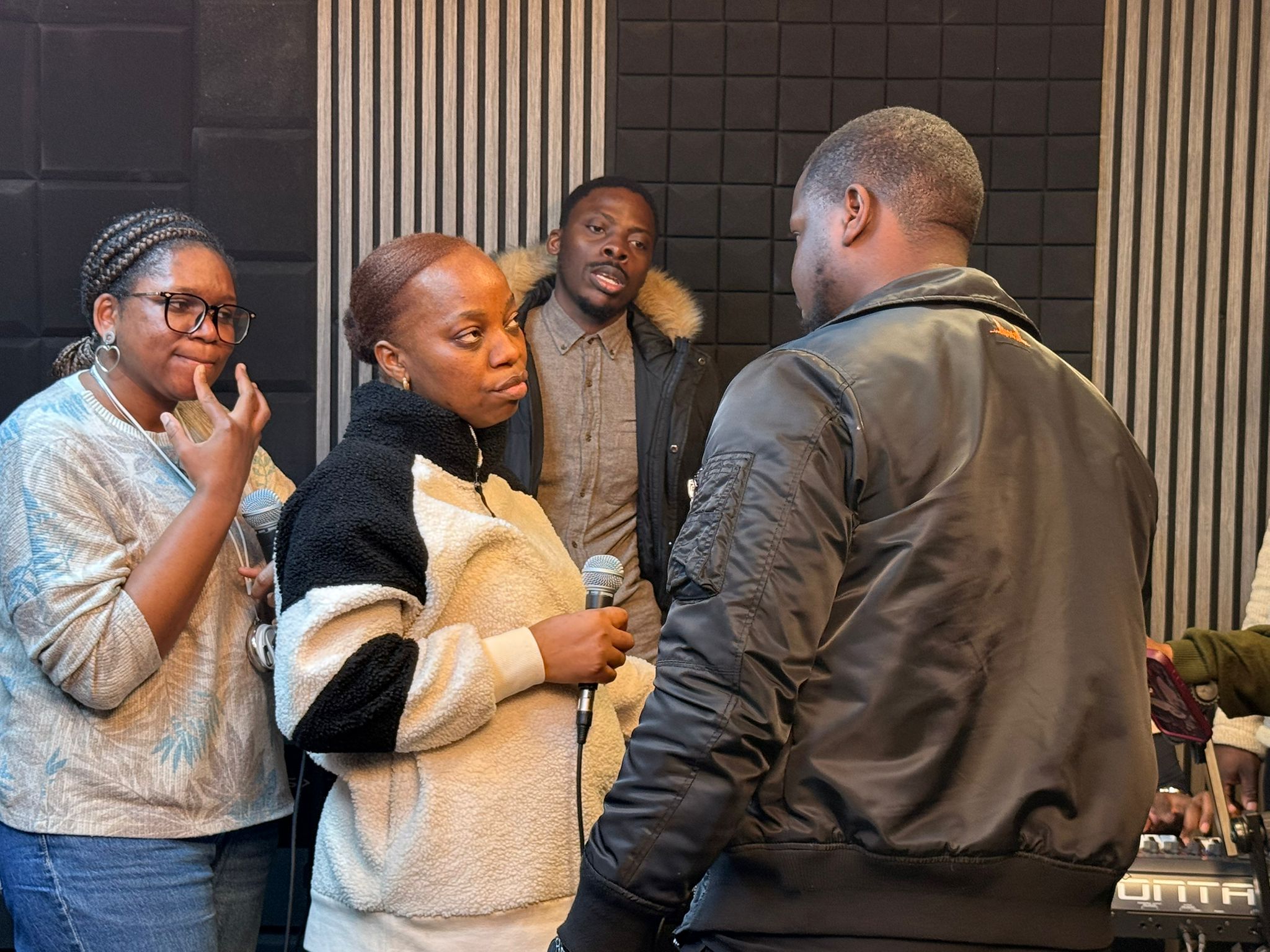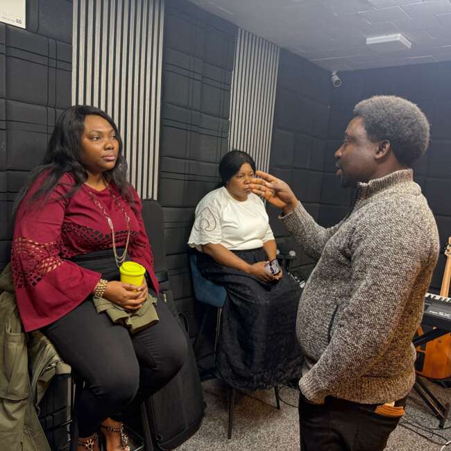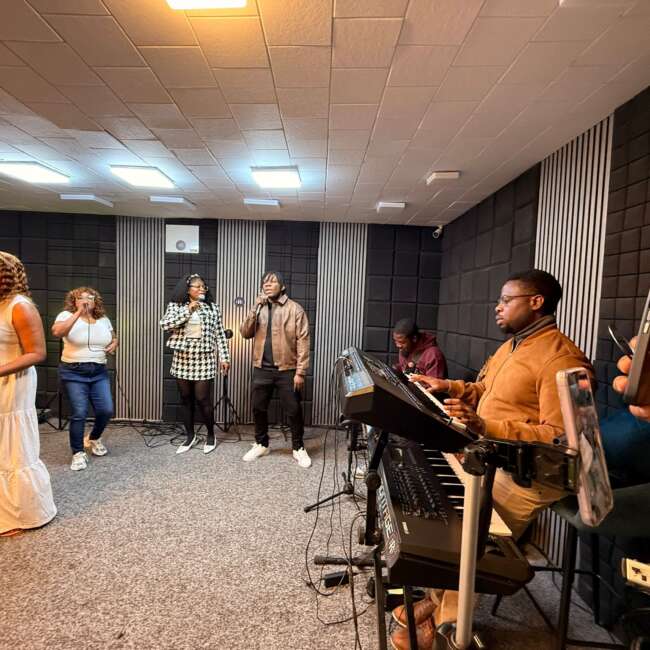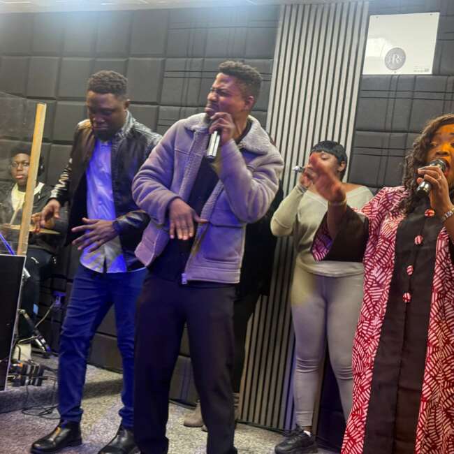 A spirited rehearsal as the choir lifts their voices in harmony, performing “Alade Ogo.” The blend of passion, melody, and unity fills the studio, capturing the soul of collective worship and the vibrant atmosphere of Darocam Studio.