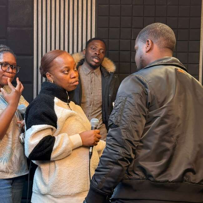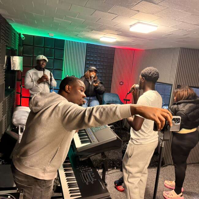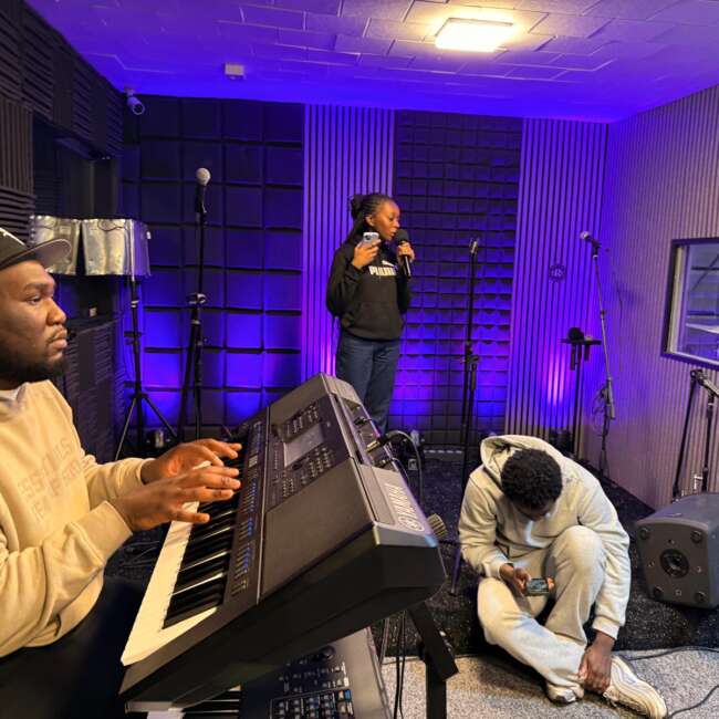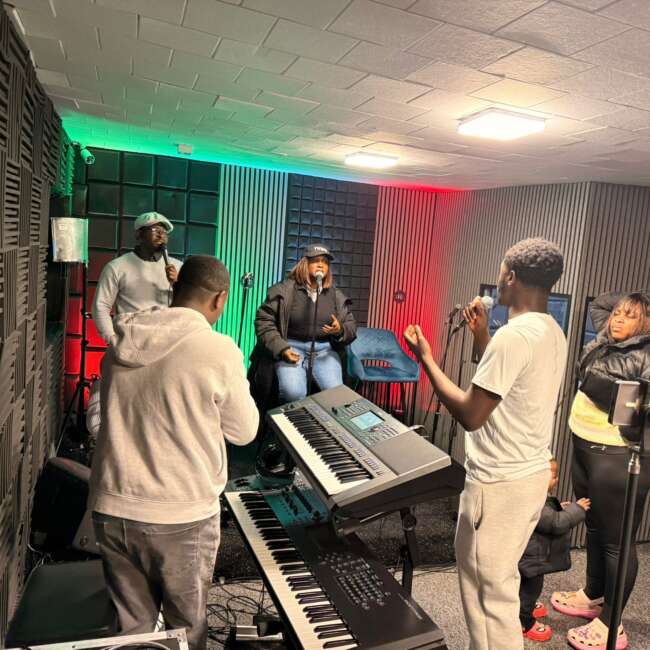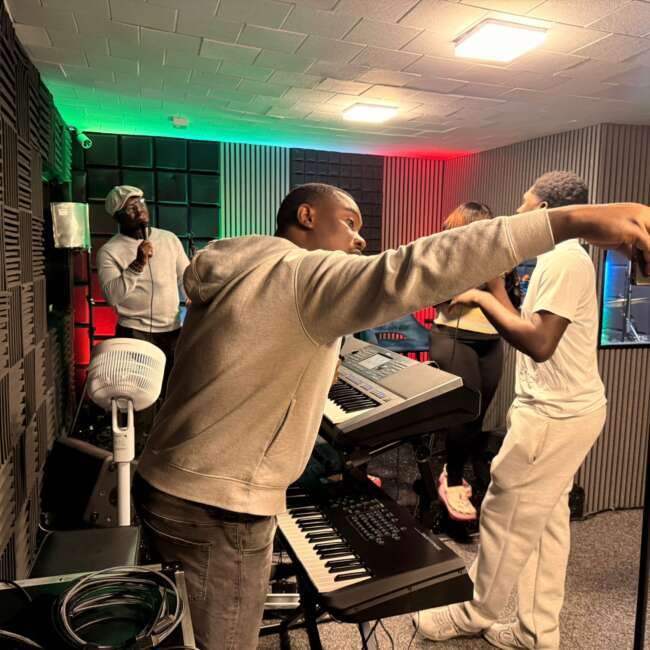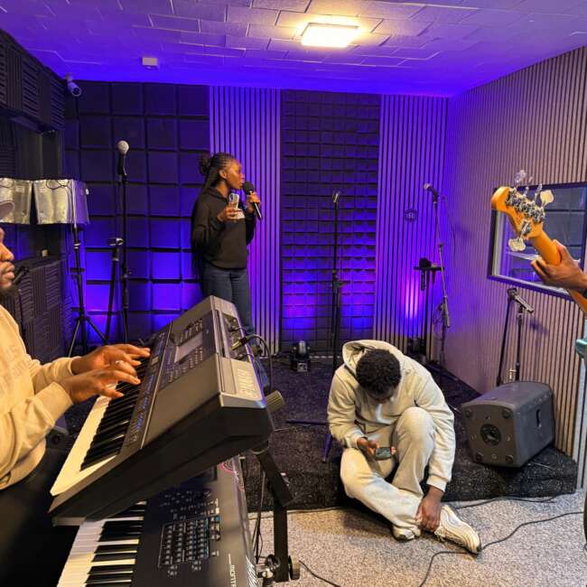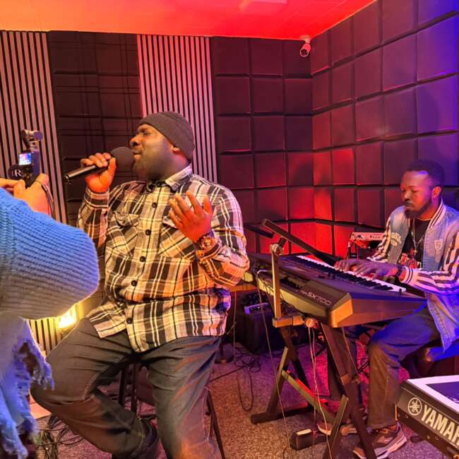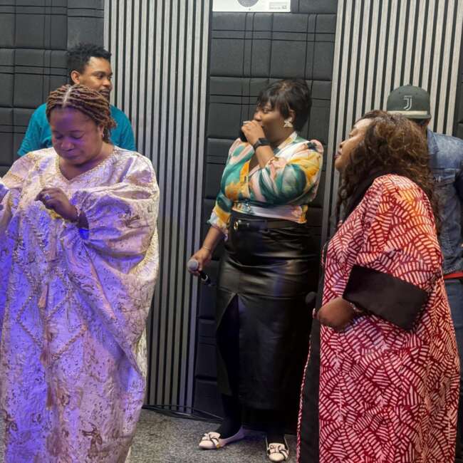 A lively radio programme in full swing, featuring an engaging presenter at the mic. The setup reflects Darocam Studio’s versatility, a space built not just for music, but for broadcasting voices, stories, and conversations that connect with audiences.